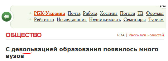 А и правда, считает Алена, девАльвация образования дошла до того, что на "РБК" это слово правильно написать не могут.