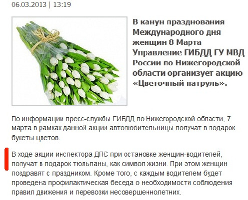 Женщины-водители теперь будут обязаны гайцам еще и цветы дарить, возмущается Ольга.