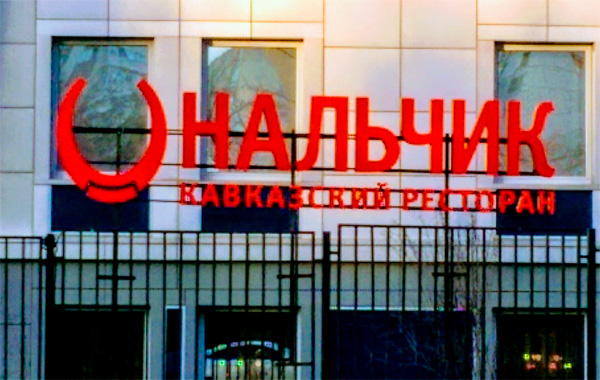 РесторанЧИК, конечно, просто "НальЧИК", но изображение унитазной крышки на вывеске тоже как бы намекает...