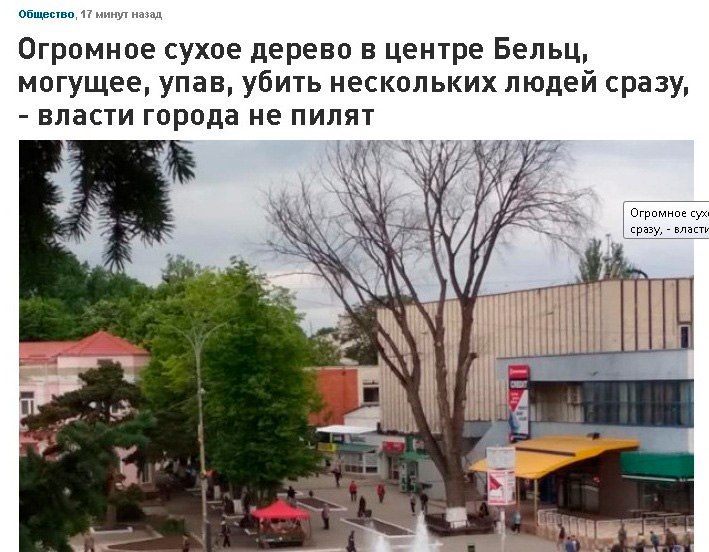 Способное при падении убить несколько людей сразу огромное сухое дерево власти города не пилят