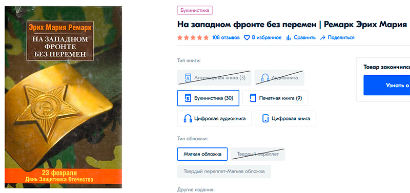 Но, дело, даже, не в этом. Солдатский ремень, родом из совка на обложке книги немецкого писателя о Первой мировой - это пять, однозначно. Ну и, до кучи, поздравление с 23 февраля на, чуть более, чем полностью антивоенной книге - это, если не пять, то, как минимум, четыре.