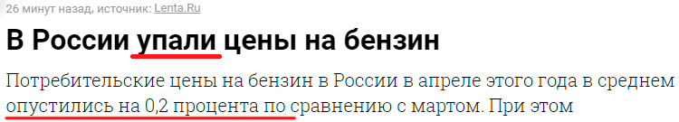 "взрывное падение цен на бензин" - следует читать "хлопкОвый отрицательный рост" 😄