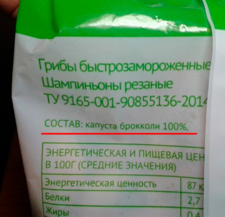 Тут, правда, не очень понятна биология процесса. Если шампиньоны быстро заморозить, то они превращаются в капусту брокколи? Или тут особую роль играет предварительная нарезка шампиньонов?