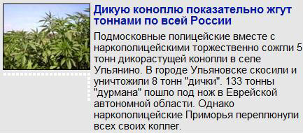 А мы-то думали, замечает Фарид, чего наш Гондурас-то так колбасит? Но теперь все понятно. Просто дикую коноплю жгут по всей России. Результат - налицо.
