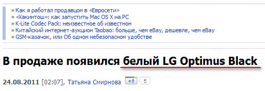 Gunner: А мне больше понравился LG Optimus Black белого цвета)) Вот смотрю я на свой Оптимус и думаю - как так?)))