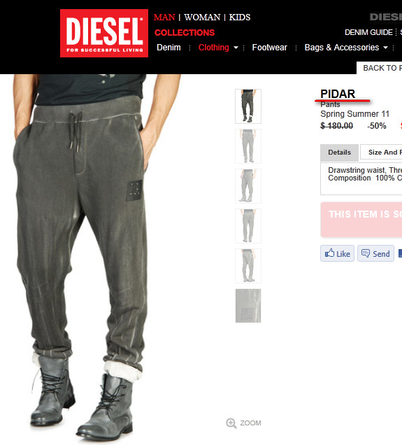 Итальянская фирма Diesel, рассказал Werkzeug, выпустила на российский рынок штанцы с интересным названием. Говорят, они уже пользуются большой популярностью.
