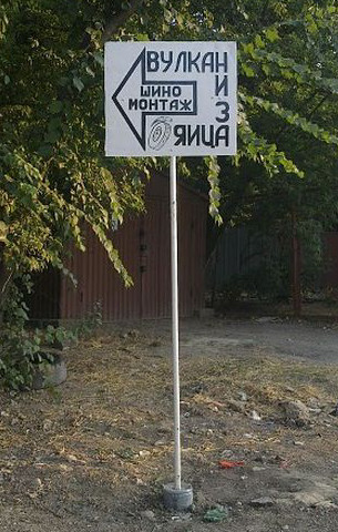 Креатив - он полезен даже в таком деле, как вывеска шиномонтажки, считает Денис. Ребята себя назвали "Вулкан и за яйца". Не знаю, будет ли у них много клиентов, но название, безусловно, креативное.