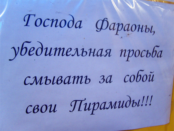 Конь Серж, конечно, - это жесть! Кстати, фотография с объявлением на двери туалета - моя))