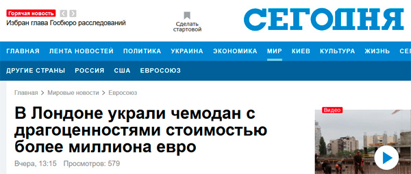 У издания "Сегодня" миллион фунтов стерлингов ненавязчиво трансформировался в миллион евро.