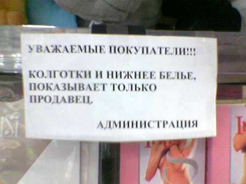 Если вы хотите посмотреть колготки и нижнее белье у продавца, замечает Максим, вам стоит только попросить.