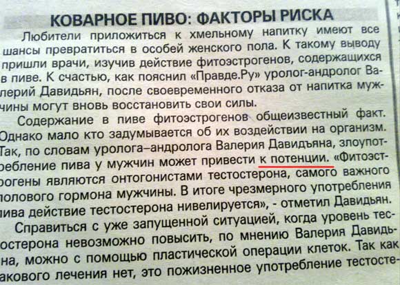 Любителям пива следует быть как можно более осторожными, замечает Айдын. Потому что употребление этого напитка может привести к неожиданной потенции, и тогда вы забудете о пиве. А это страшно!