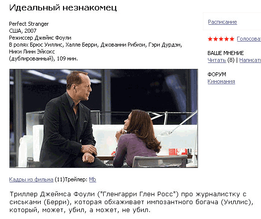 На "Афише", восхищается Тарасов, ну просто исчерпывающие анонсы фильмов. Буквально идеальные!