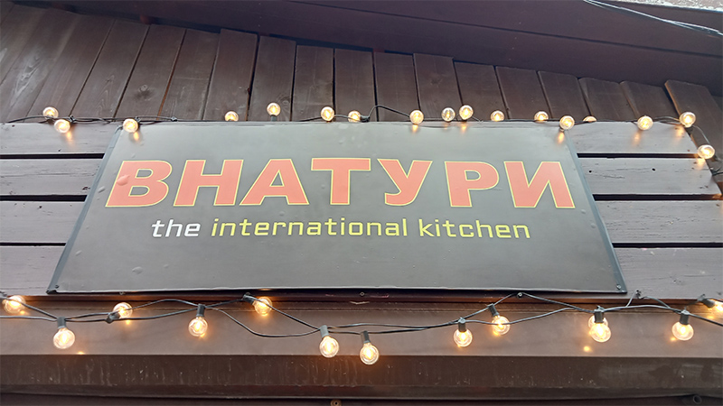 Аким обнаружил вот такой ресторан международной кухни в Ростове. Что означает загадочное "Внатури" - мы с котом Бубликом разгадать не смогли. Видимо, это что-то грузинское: чахохбили, сациви, внатури, киндзмараули! А при чем тут тогда международная кухня?