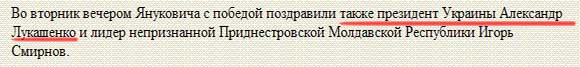 Спрашиваете, кто выбрал? Белоруссия! Они проголосовали за то, чтобы Лукашенко у них был пожизненным разносчиком хрустального сосуда, президентом Украины, первым космонавтом, лучшим хоккеистом, папой Римский и князем Барановическим. Как раз на недавнем референдуме проголосовали. Единым списком. Говорят, Лукашенко готовит референдум по отмене земного тяготения. Чтобы Украина переместилась в Белоруссию, а то рулить несподручно.