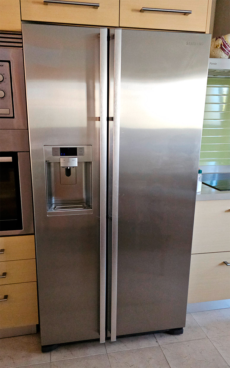 Я писал о том, что у нас в самую жару (еще и в пятницу) сломался холодильник. Холодильник Samsung - здоровенный, на 620 литров, двухдверный, с большой вертикальной морозилкой и со льдогенератором.