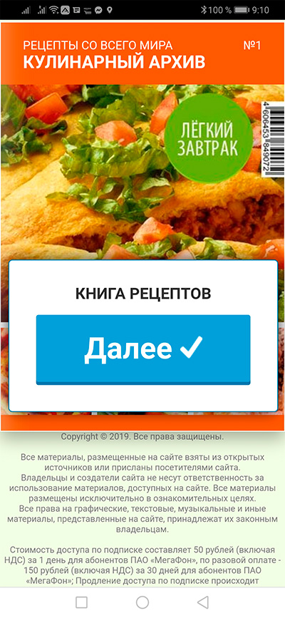 Кстати, а что не понравилось в 50рецептов? Они все честно пишут про свой платный контент, причем как сверху так и снизу. Лично я ничего мошеннического не увидел. И скорее всего, на телефон придет уведомление о платной подписке, которую можно отключить.