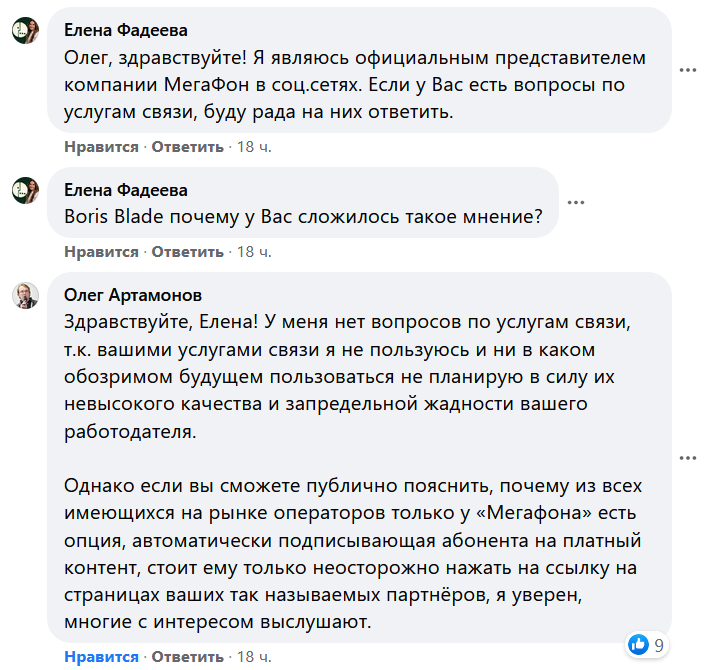 Upd: Ха-ха. В этом посте в FB в комментах появилась официальная представительница "Мегафона". После нижеследующего вопроса она быстренько оттуда свалила и больше уже не отсвечивала. То есть была рада ответить, короче говоря.