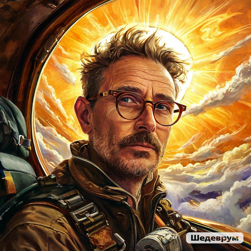 Шедеврум по промпту "Алекс Экслер в очках в шестидесятом полете вокруг Солнца" выдал такое...