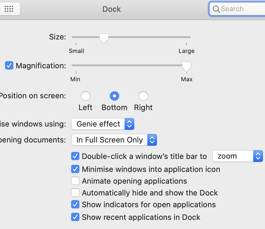 Контекстное меню в Doc Bar — медленно и не наглядно.
