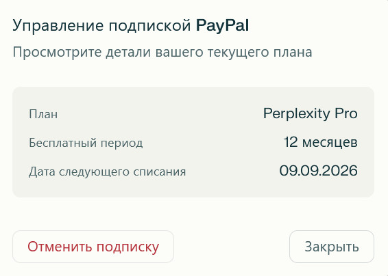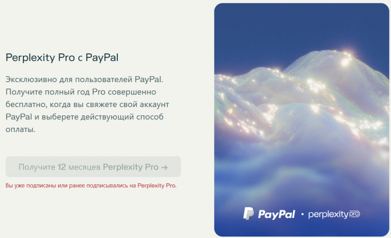 После этого заходите сюда. Нажимаете кнопку "Получите 12 месяцев Perplexity Pro", вводите свои данные PayPal.