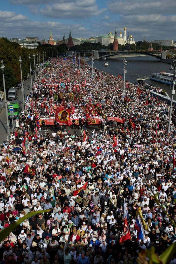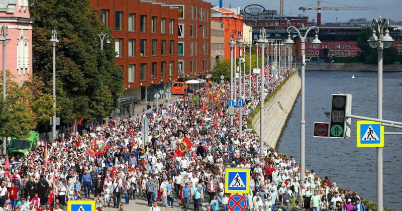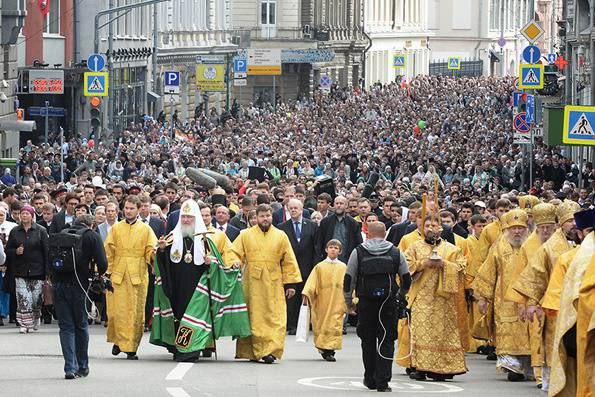 Воскресное шествие - крестный ход, который от Храма Христа спасителя до Новодевичьего монастыря, прошел 7 сентября в Москве, вызвал серьезную панику во властных этажах. Казалось совершенно нейтральное и аполитичное мероприятие, проводимое самим Патриархом Кириллом (Гундяев) не должно было стать раздражителем действующему режиму, а напротив показать единение верующих, представителей РПЦ с действующей властью.