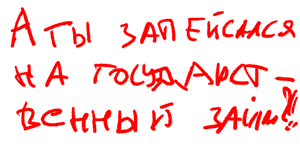 Ну и так как мы никаких восторгов, услышав эту потрясающую новость, не высказали, дама решила нас добить и произнесла коронную фразу: "Вот как-то транспарант тушью нарисовала - три на два метра, клянусь!"