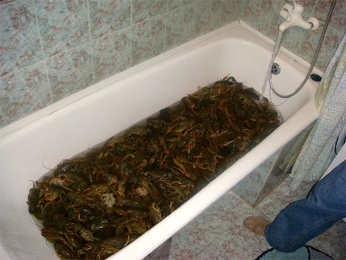 Кто не пробовал раков, которых варит мистер V. - тот, в общем, считай и не жил. Но в этот раз, когда затеялась очередное суаре этих членистоногих, было решено попробовать новый рецепт, подсказанный очень знающими людьми. Новизна рецепта заключается в том, что перед варкой раков нужно накормить сметаной - не с ложечки, конечно, а просто залить их сметаной и дать в ней побарахтаться часа три, не меньше. После этого можно варить, и пацаны говорили, что мясо раков, объевшихся сметаны, приобретает совершенно дивный оттенок вкуса.