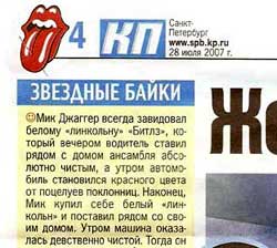 Вчера перед концертом "Роллинг Стоунз" в Питере раздавали бесплатную газетку, в которой была вот такая страничка. В левой колонке там напечатаны мои "Исторические миниатюры" , которые были написаны ровно десять лет назад. Нет, ну ладно сперли без разрешения, но кто мешал хотя бы имя автора-то указать? Тем более, что достаточно взять любую характерную строчку, ввести в поисковик и первой же ссылкой этого автора без проблем найти?