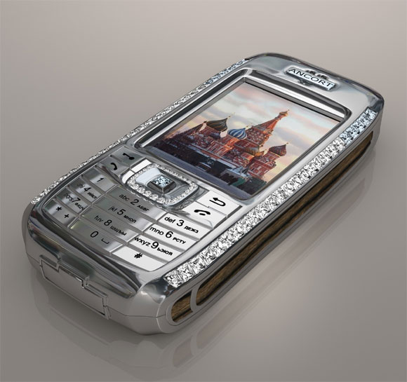 Все, гламурные юноши и оксюшевшие от своей Собчак тетки могут смотреть на свои вшивые Vertu и плакать горючими слезами. На арену выходит новая супермобила под названием Ancort Diamond Crypto Smart Phone. Прототипом, правда, выступил телефончик, стоимостью баксов в 50, но эта штука тянет уже на 1300000 долларов, и оно неудивительно: металлические части изготовлены из чистой платины 950, навигационная клавиша - из розового золота, деревянные части - из эбенового дерева, ну и мобилка инкрустирована 50 белыми и 10 синими брюликами, а в качестве звонка используется эксклюзивная версия песни "Зайка моя". Выглядит это чудо природы вот так: