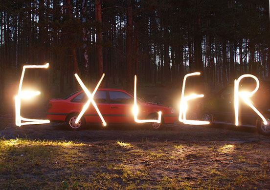 Друзья из Таллина развлекаются. Судя по фото, это один человек рисовал буквы фонариком. Они хотели написать Exler.ru, но затвор фотоаппарата сработал чуть раньше и .Ru не получилось.