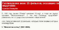 В USA Today опубликовали статью, в которой некая Susan Wloszczyna называет 25 американских фильмов, оказавших (как я понимаю, по ее мнению) наибольшее влияние на индустрию - Hollywood highlights: 25 movies with real impact (вот здесь перевод Инопрессы). Список для людей, разбирающихся в кино, более чем спорный. Ну и кроме того, судя по всему, речь идет только о фильмах конца прошлого века. Вот то, что вызвало удивление лично у меня: