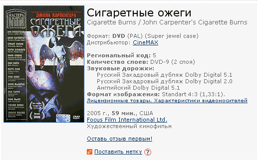 Ну ладно еще, когда в русском варианте пишут слово "Трафик" с двумя "ф" и ставят это слово в название фильма, хотя это тоже позорище. Ну ладно пишут "ШулерА" вместо "Шулеры" в названии. Но, извините, "ожЕги" - это уже вообще что-то немыслимое. Им надо было написать до кучи "ожега". "Сихаретныя ожега" нужно было написать этим безграмотным уродам.