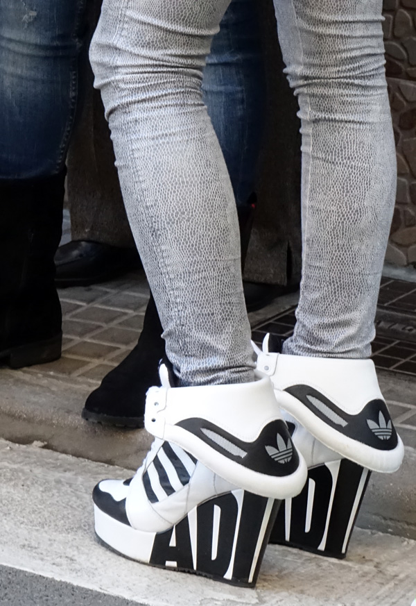 Вот это, я понимаю, моднючие адидасы. Хоть сейчас на стометровку! (Вчера в нашем городке увидел.)