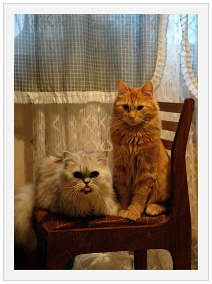 Вот такая вот несчастная маленькая кошечка, нашедшая случайный приют от злых людей в коробке из-под компьютера. И ведь не скажешь, что буквально пять минут назад эта партизанка поймала в коридоре здоровенного перса дедушку Тошу, набросилась на него, повалила, надавала люлей лапами и сбежала, оставив онемевшего от возмущения и неожиданности Тошу позорно валяться посреди коридора...