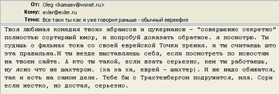 Почему, кстати, евреефил - я так и не понял... Интересно, дружище Олег это писал слегка ужрамшись или он и без измененного сознания такой?