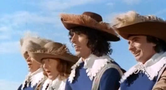 Во времена моей советской молодости по экранам с диким успехом прокатился фильм "Четыре мушкетера" клоунской группы Шарло. Фильм, во-первых, был очень смешной (по тем временам), а во-вторых, там было несколько фривольных шуток, оголенные плечи и оголенное бедро королевы, что у советских школьников вызывало просто шок от восторга.