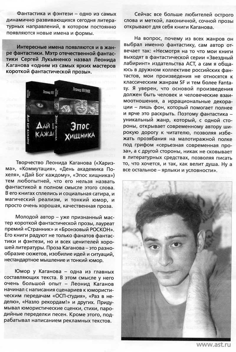 В журнале "Книжный бизнес" в одной большой статье целая страница посвящена Лёне Каганову (lleo). Мы с Бубликом радуемся, гордимся личным знакомством и поздравляем. Вот скан статьи (при щелчке по превьюшке в отдельном окне откроется полный размер).