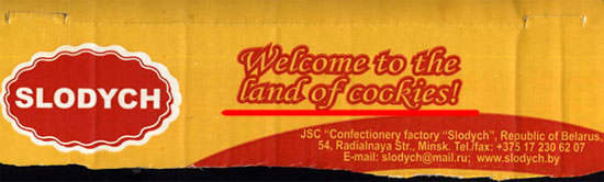 Разбираю присланные баннизмы. Вот этот скан, присланный Адольфом, просто шедевр!.. Белорусское печенье с завлекающей надписью на английском: "Добро пожаловать в страну задорных членов".