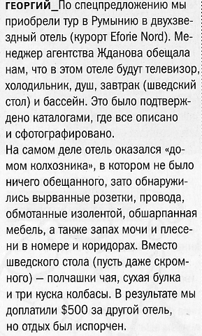 Туристические агентства я оправдывать не собираюсь: понятное дело, они могли наплести всякой чуши и за это обязаны отвечать. Но каким местом думают люди, покупающие путевки в такие места за такие деньги, ожидая при этом получить то, что реально стоит минимум в три раза дороже - я не понимаю. Это уже не наивность. Это уже инфантилизм какой-то. Прилетит вдруг волшебник в голубом румынском вертолете и из Дома колхозника сделает отель "Занаду". Ага, ага, ЩАС...