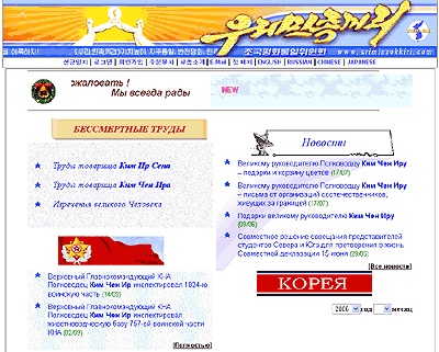 А вот и домашняя страничка Ким Чен Ира. Дизайн, правда, ужасный, как и полагается для обычной кошмарной домашней странички, зато там товарисч Ким Чен Ир подробно рассказывает, как народ должен любить его, своего вождя, и как он заботится о народе, позволяя этим уродцам жить в тени его сияния.