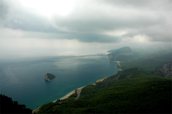 Это мы вчера по побережью путешествовали - почти доехали до Олюдениза, но пришлось развернуться из-за жуткой грозы, которая там бушевала. От грозы, кстати, убежали. Но у нас и была задача покататься по побережью, пофотографировать и все такое. Отчет чуть позже, сейчас просто одна фотография с теми самыми хлябями, которые разверзлись.
