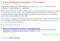Статья на Хабрахабре - В спаме обнаружена анимация с 25-м кадром. Я всегда считал, что повторять эту старую и уже до боли не смешную разводку, придуманную в середине прошлого века одним американским жуликом, прилично только в Госдуме, но никак не в изданиях, которые позиционируют себя как "аналитические". Оказалось что нет - всяко лыко в строку. Цитирую демоническую фразу из конца заметки: