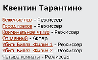 Наконец-то у меня дошли руки вычистить большинство косяков в базе актеров-режиссеров кинорецензий, после чего Олег Константинов, за что ему огромное спасибо, сделал там совершенно новую систему автоматического создания базы фильмографий (связанной, разумеется, с опубликованными рецензиями). Что изменилось? Во-первых, теперь нет путаницы с тем, где кто актер и где кто режиссер - все выводится совершенно четко, анонсы при этом не дублируются - вот характерный пример. Во-вторых, ссылка на персону теперь дается не в цифровой форме, а латиницей, в которую автоматом переводится русскоязычное написание - вот, например, ссылка на фильмографию Квентина Тарантино - exler.ru/films/cast/Kventin_Tarantino.
