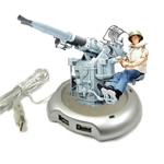 Есть такой сайт - Blubbie.com. На нем опубликована "новость" о том, что японцы, дескать, выпустили USB-устройство, которое защищает компьютер на все 360 градусов и в любого приближающегося стреляет настоящими гвоздями. Ну, в общем, по самой "новости" понятно, что это хохма, а кроме того, если щелкнуть по приведенным двум ссылкам, попадаешь на страничку, где подсчитывают дурачков, поверивших в это безобразие. Не говоря уже о том, что в качестве иллюстрации приведен обычный USB-нагреватель для чашки с чаем, на которого водрузили игрушечную зенитку: