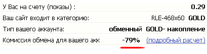 Комиссия -79% означает, что за 1 показ у меня на сайте система мне должна 1,79 показов на других сайтах. Вместе с ее комиссией. Учитесь, как баннеры нужно показывать :D