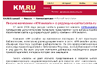 KM.ru плачется, что, видите ли, Лента.ру не рассказывает об их блестящих победах на почве "защиты авторских прав", зато рассказывает о том, как саму КМ.ру вздрючили за нарушение этих авторских прав. "Вот уроды" (с)Помнится, когда я написал статью "Защита авторских прав" как дешевый пиар, на следующий день из KM.ru написала какая-то их пиар-тетка и предложила мне у меня на сайте (!) опубликовать их дебильный пресс-релиз на эту тему. Также тетка не нашла ничего умнее, как предложить мне черпать информацию о действиях KM.ru исключительно из их пресс-релизов. Дальше, разумеется, было как в том анекдоте: "Почему на хер?"