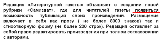 Поразительно безграмотное объявление на сайте "Литературки". Вот уж действительно - так себе литературка. К литературе не имеет ни малейшего отношения.