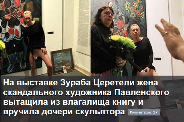 В этом семействе - все долбанутые. Хотя, конечно, было бы логичнее, если бы жена художника Павленского из своего влагалища достала не книгу, а прибитые яйца художника Павленского. Вот это был бы перфоманс так перфоманс.