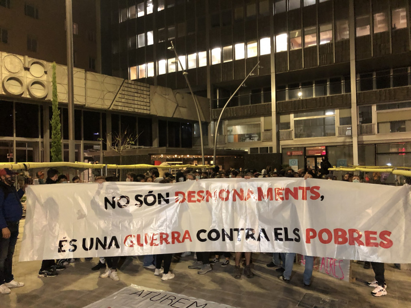 Демонстранты зачитали манифест, в котором они заявили, что не потерпят больше новых выселений в городе. (Прим. Экслера: в Испании, слава богу, процесс выселения окупасов заметно упростился, и только в сентябре в Барселоне, где явление окупасов цветет и пахнет (в прямом смысле слова) пышным цветом, было порядка 900 выселений - что, собственно, и вызвало возмущение упоротых леваков.)
