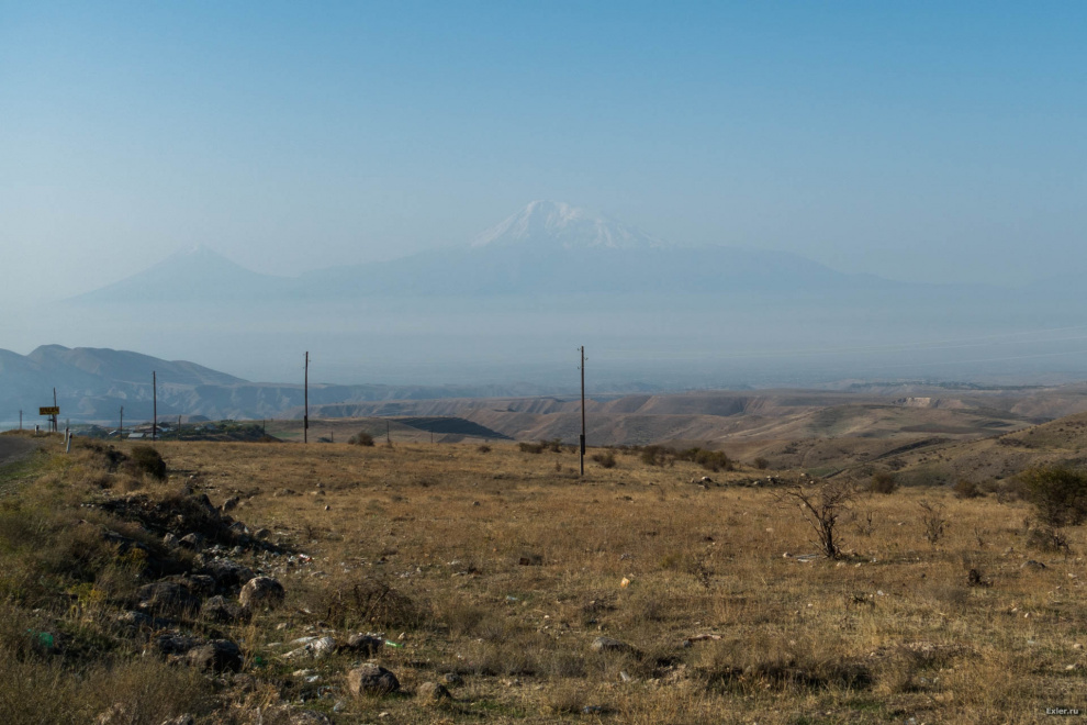 Ну, мы туда и отправились. Гора Арарат находилась в дымке, но зато отчетливо была видна целиком и полностью: Большой Арарат и Малый Арарат. (Все фото щелкабельны, открываются размером 1920 пикселов по ширине.)